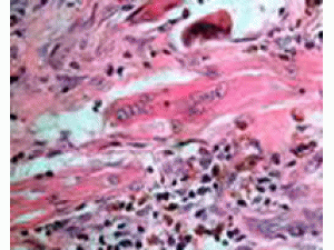 2、Ⅳ型EDS的诊断:(1)临床诊断标准:主要标准是动脉破裂,肠破裂,妊娠子宫破裂,血管型EDs家族史。次要标准有皮肤菲薄(尤其是胸部和腹部皮肤),易挫伤(自发性或有轻微外力时),特征忤面容(薄唇、小下颌、窄鼻、大眼),肢体及皮肤过早衰老,小关节活动过度,肌肉或肌腱断裂,早发的静脉曲张,颈动静脉海绵窦瘘,气胸或血气胸,慢性关节脱位或半脱位,先天性髋关节脱位,马蹄内翻足,牙龈萎缩。满足主要标准中的两项对于诊断Ⅳ型EDS具有高度的特异性,建议进一步检查以确诊,如在此基础上出现1项或多项次要标准,则支持Ⅳ型EDS的诊断。(2)病理变化:患者真皮各层均有形态学改变,真皮变薄,可减至正常的1/3;胶原纤维束细小而不规则,缺乏明显边界,结构松散,问隙增宽;弹性纤维和无定形物增加;成纤维细胞表现为不同程度的粗面内质网扩张。还可见表皮增厚分层,血管周围基底膜和神经束出现丝状带纹。真皮乳头层出现朗罕细胞,提示可能存在异常抗原刺激(3)实验室检查:包括生化检测皮肤中胶原的含量;培养皮肤成纤维细胞,检测Ⅲ型前胶原的含量;DNA序列分析证实Ⅲ型胶原CClI'3A1基囚突变。然而,胶原含量的检测有时很难进行评价而基囚诊断作。为确诊的重要方法被更多地应用于临床,通过逆转录(RT)PCR技术扩增COBA1基因的三倍螺旋区的3.8kb片段,然后直接测序证实基因突变。本例满足了动脉破裂这个主要的诊断标准,但本例患者出现F胃体部破裂而并非肠破裂,结合患者尸检报告所见,腹主动脉Im管壁存在结构异常,以及皮肤真皮层的改变,从而得以临床诊断。由于实验条件受限,未行相关基因的测序证实。