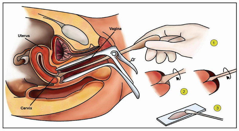 宫颈癌曾经是危害女性最为常见的一种恶性肿瘤,在生殖道肿瘤中,它是仅次于卵巢癌最为常见的一种恶性肿瘤,女性一生中发生宫颈癌的几率在128分之一。和卵巢不同的是,宫颈的位置比较靠近体外,医生做检查的时候,窥具打开阴道后就可以非常容易暴露宫颈,因此这就为预防宫颈癌提供了一个很大的方便。早在19世纪20年代,一个希腊的医学家Papanikolaou发明了从宫颈上获取细胞进行肿瘤筛查的方法,即所谓的宫颈刮片(Pap Smear)。医生每次进行体检的时候,用一个小木板在宫颈上轻轻一刮(不会疼痛的!),取下来的细胞拿去在显微镜下检查看看有没有和正常细胞不一样的肿瘤细胞在(图1)。正是因为这项伟大的发明,改变了宫颈癌的筛查方法。我们知道恶性肿瘤从单个细胞发生恶变开始的,恶性肿瘤的细胞一变二,二变四,逐渐长大,长到象拳头大的肿瘤往往需要数年甚至更长的时间,如果可以在肿瘤还没长得很大之前,就通过宫颈刮片检测到,及时进行处理,那么宫颈癌也就可以得到治愈。如今,在发达国家,女性定期的体检意识非常强,很多发生恶变的早期肿瘤就及时得到检测并得以治疗,长得如菜花一样溃烂的晚期宫颈癌已经不多见了(图2)。恶性肿瘤在早期治疗和晚期治疗其预后可能会截然不同的,绝大部分早期肿瘤完全是可以治愈的,因此宫颈癌整体的死亡率也就得到了大幅度下降。相反,卵巢因为位置较深,其早期检测和预防的方法远不如宫颈癌。
