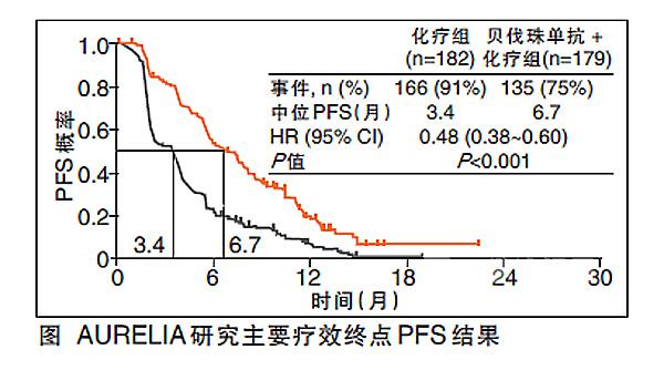 AURELIA研究:加用贝伐珠单抗使铂类耐药复发卵巢癌患者的PFS延长近1倍