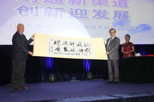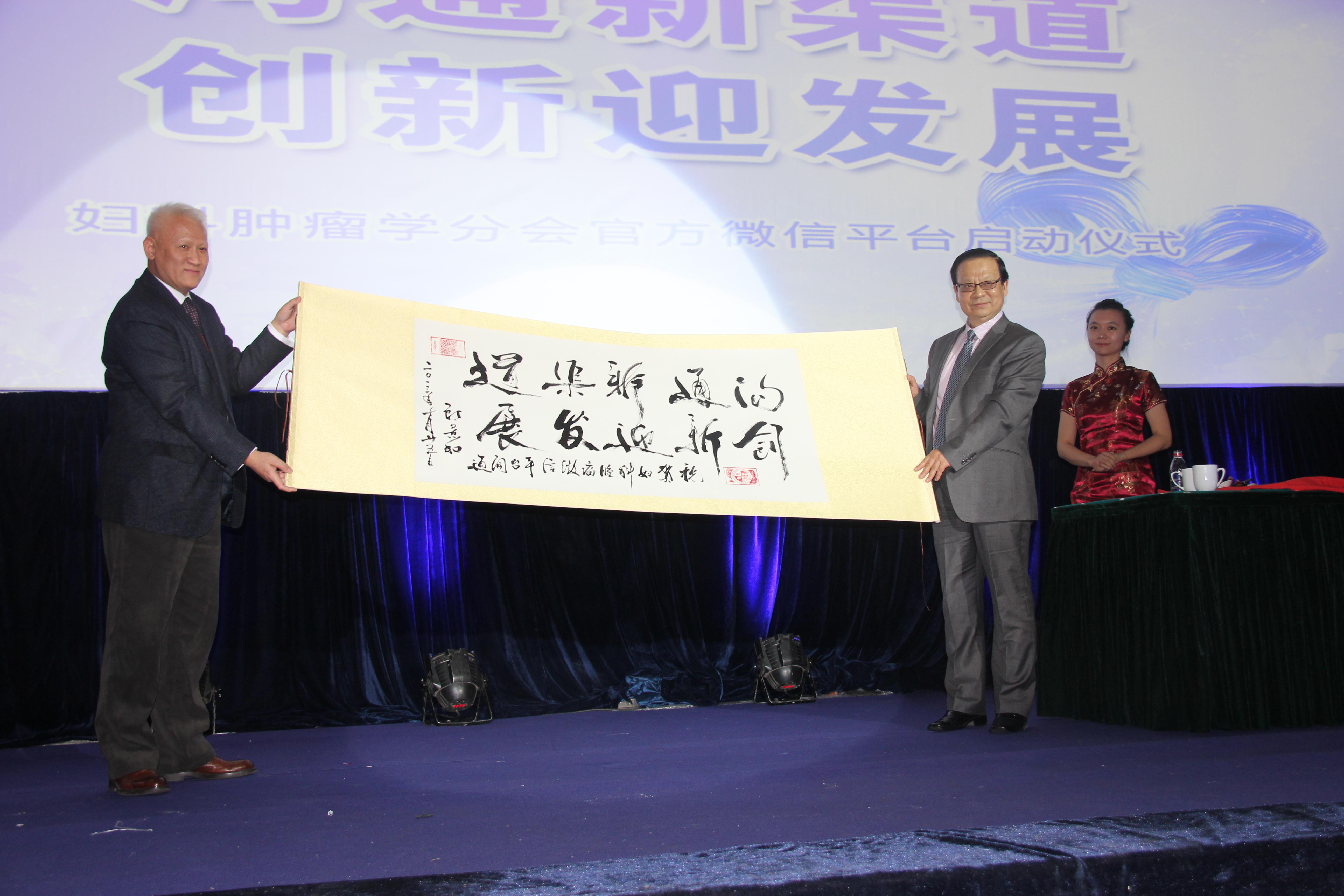 大会除了体现传承和发展的理念外。还突出的表现出与时俱进的创新精神。妇科肿瘤分会官方微信平台在本次大会上正式启动。郎景和院士在启动仪式现场题写了“沟通新渠道、创新迎发展”的主题词。郎景和院士、沈铿教授为主题词共同盖章,宣布微信平台正式开通。