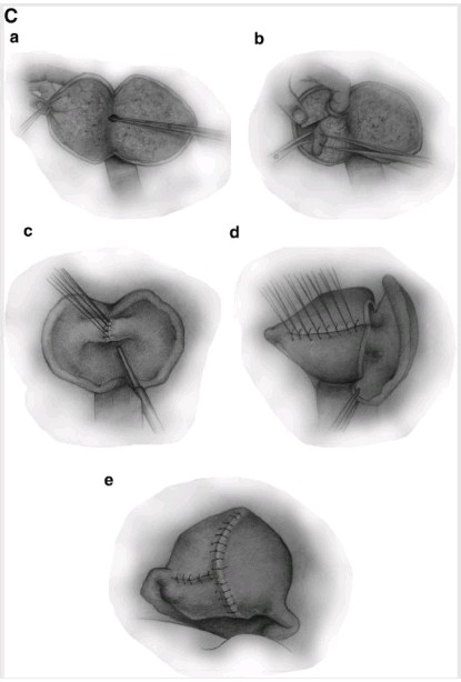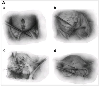 本文对保留子宫的子宫腺肌症手术治疗方法进行了文献系统综述。 保留子宫的子宫腺肌症手术分为: (1) 子宫腺肌症完全切除, (2) 病灶细胞减灭或不完全切除, (3) 非切除治疗。病灶完全切除术后,痛经缓解率为 82%,月经过多的病例中有 68.8%得到控制,妊娠率为 60.5%。病灶部分切除术后痛经缓解率为 81.8%,月经过多患者中 50%得到控制,妊娠率为 46.9%。结果提示:通过保留子宫的手术及相关其他措施治疗子宫腺肌症是可行有效的方法。参加以下图示。