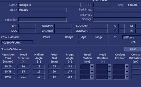 图5.利用SonoVCAD?labor 产程监测软件记录整个分娩过程中各参数的变化。