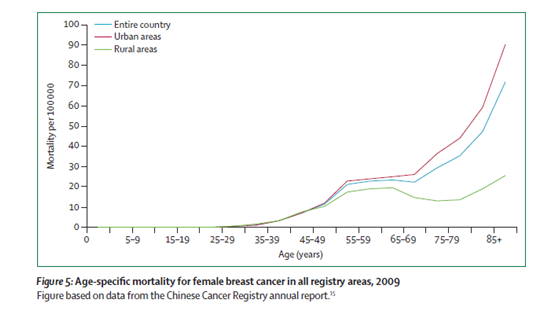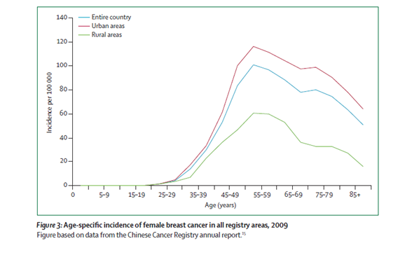 文献来源: Fan L, Strasser-Weippl K, Li JJ, et al. Breast cancerin China. Lancet Oncol. 2014;15(7):e279-e289.