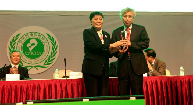 第十一届全国政协副主席、中国妇幼保健协会名誉会长张梅颖为范渊达院士颁奖