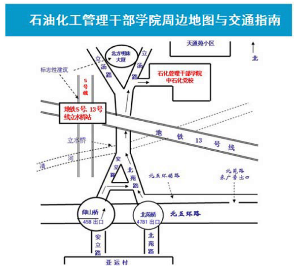 机场:可坐机场到亚运村的大巴,亚运村下车后再换乘上述公交车或地铁5号线。如从机场乘出租车,从北五环北苑路、来广营出口下辅路,按下述路线图继续行进。