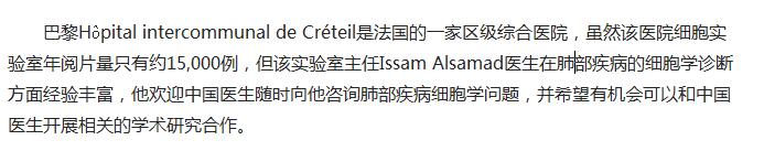 法国巴黎Laboratoire Cerba是法国最大的细胞学实验室,年阅片数量近60万例,其中非妇科病例约10%,该实验室主任Christine Bergeron医生是现任法国细胞学学会主席,她就实验室质量控制、细胞学医生培养和认证体系以及宫颈癌联合筛查等问题和中国医生进行了深入讨论和交流。