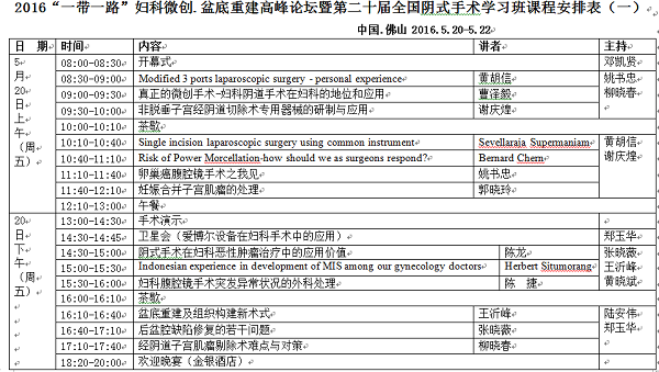 为了进一步提高我国妇科微创、阴式系列手术、盆底重建的理论水平和手术质量,南方医科大学附属佛山妇幼保健院与中国及亚太地区妇科微创肿瘤学会定于2016年5月19日~22日在广东省佛山市联合举办2016 ? “一带一路”妇科微创、盆底重建高峰论坛暨第二十届全国阴式手术学习班,本次会议属国家级继续医学教育项目(2016-05-01-107(国)),邀请到香港、台湾、东南亚及国内众多著名的阴式手术、盆底、内镜专家到会作学术讲座和手术现场演示,必将对提高参会代表的理论水平和手术质量有显著的促进作用。与会者颁发国家级Ⅰ类学分10分。