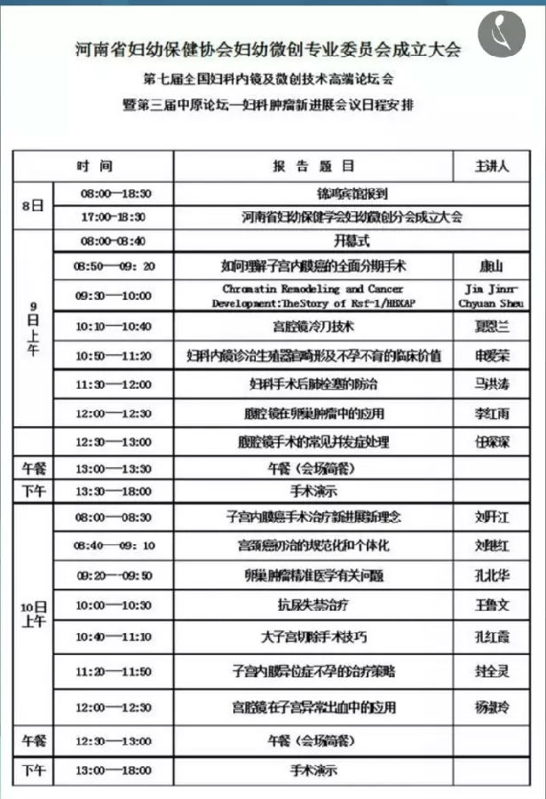 (二)第七届全国妇科内镜及微创技术研讨-第三届中原论坛-妇科肿瘤新进展会议内容。