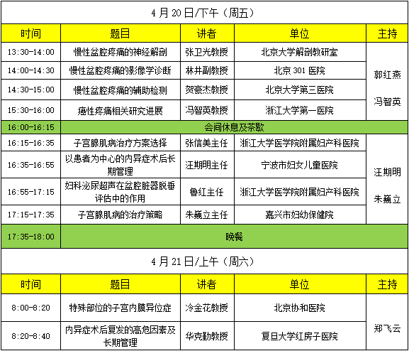 人间四月天,最美在杭城。第四届国际子宫内膜异位症疾病、慢性盆腔疼痛和妇科微创诊疗热点问题研讨会议将于2018年4月20-22日在杭州召开,本次会议是由浙江大学医学院附属妇产科医院和浙江省盆腔整合医学专业委员会主办,张信美教授担任执行主席。我们邀请了来自国内各位顶尖专家以及澳大利亚、香港的国际知名学者共同分享和交流相关领域的最新进展,为大家演绎一场学术盛宴。会议将采用专题讲座、病例讨论、视频演示等多种形式,主要探讨妇科疾病微创诊治的新理念和新方式;子宫内膜异位疾病的基础和临床研究的新进展;慢性盆腔痛的病理生理基础和诊治策略等。同时举行国家级继续教育班《子宫内膜异位疾病的基础研究和临床诊治策略》,参加会议者可获国家级I类医学继续教育学分证书10分。