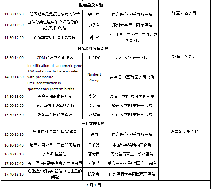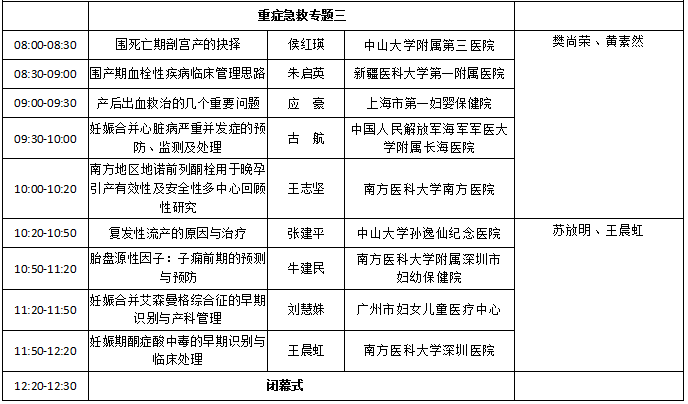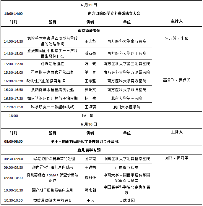 暨第十三届南方母胎医学进展研讨会日程