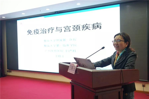 暨南大学附属第一医院妇产科副主任、妇科王晓玉主任开篇以2018年获得诺贝尔医学奖的两位科学家作为切入点,提及两位科学家在癌症免疫治疗领域取得了开拓性的贡献。随后其从免疫细胞分类、肿瘤治疗发展历程、肿瘤免疫治疗分类、发生发展入手,讲解了Provenge疫苗治疗晚期前列腺癌的机制,最后分享了妇科领域免疫治疗的前沿热点,如NCNN宫颈癌指南2018年第2版推荐了帕姆单抗的新的适应证除了适用于MSI-H/dMMR阳性患者外,还增加了PD-L1阳性患者。