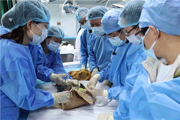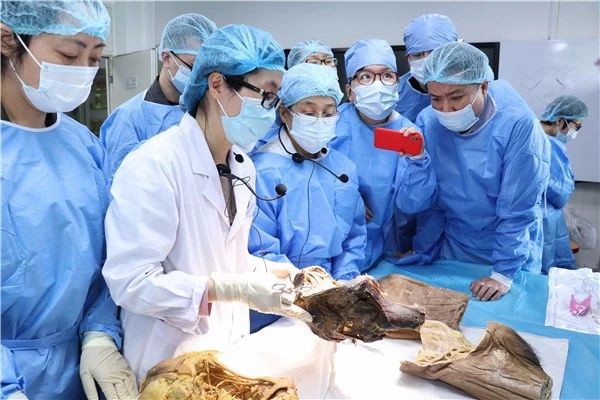 最后,也是本次分会场最精彩的部分,北京大学医学部解剖教研室与北京大学第三医院共同举办了盆底解剖Workshop,解剖教研室的陈春花老师进行了盆腔实体解剖讲解,韩劲松主任结合盆腔器官脱垂新的发病机制从盆腔三个水平进行详细解剖,让学员更深刻认识到了一水平的重要性,同时对盆腔器官脱垂和压力性尿失禁的手术方式结合实体标本进行讲解。解剖教研室刘永寿老师组织在场学员分成4组,由韩劲松、张坤、王一婷、杨俊芳等盆底专业医生带领,真操实练,进行女性盆腔系统实战解剖演练,大家兴致高昂,兴趣浓厚,积极动手,踊跃提问,大胆与专家教授共同理清思路、探讨问题,将会议推向高潮。