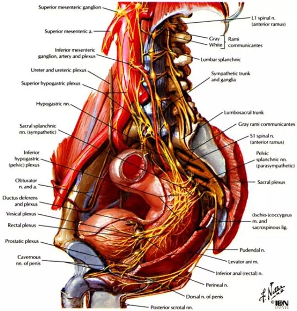 阴部神经是支配会阴的运动及感觉神经,发自第2-4骶神经(S2-4),穿行过梨状肌和尾骨肌,经过坐骨大孔离开盆腔,穿行于骶棘韧带侧后方,经过坐骨小孔进入会阴。在会阴部,阴部神经沿着坐骨肛门窝的侧壁穿行在阴部管中,阴部管又叫做Alcock氏管,由闭孔内肌内侧覆盖的筋膜构成。一般认为阴部神经周末分为三支,阴蒂背神经、会阴神经和直肠下神经。
