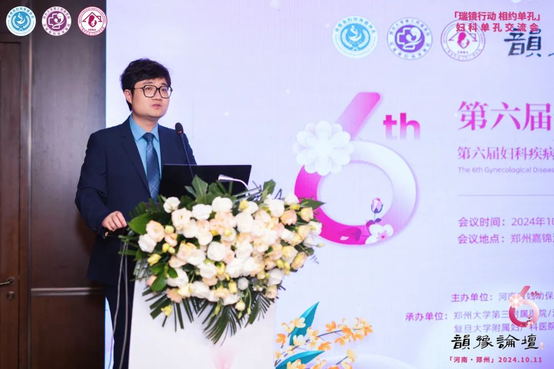 旭日高照,清风送爽。分会场开幕式由杨立教授进行致辞。他首先对莅临本次会议的各位专家、同仁表示了热烈的欢迎和衷心的感谢,随后,介绍了郑州大学第三附属医院妇科开展单孔腹腔镜手术的情况。他表示,本次会议邀请了省内外单孔腹腔镜领域多位经验丰富的专家学者聚焦单孔腹腔镜手术的新进展、新技术和新理念,展开前沿授课。希望与会学员可以借此机会加深交流与学习,提升理论储备与手术技巧。孙大为教授:单孔腹腔镜手术机器人技术浅析及妇科临床实践