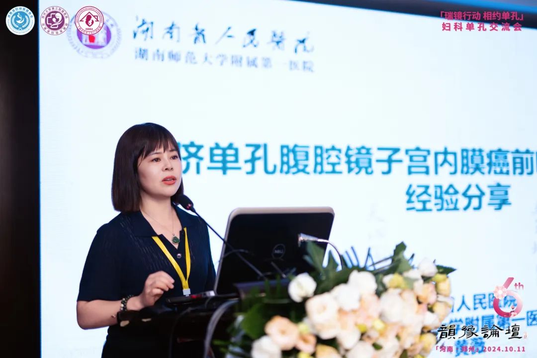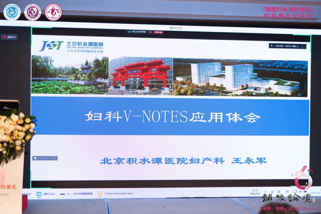 传统的单孔腹腔镜手术中存在以下几个难点:(1)手术器械及光学系统的相互干扰;(2)同轴操纵,违背了传统的三角分布原则;(3)画面立体感差,画面稳定性差。北京协和医院孙大为教授详细分享了单孔机器人手术的发展历史,并重点讲解了单孔腹腔镜手术机器人技术在妇科临床中的应用。他表示,机器人技术辅助单孔腹腔镜可提高手术操作的直观感、精确度、安全性,解决单孔腹腔镜临床操作的痛点,为临床医生治疗患者提供了无限可能。黄薇教授:经脐单孔腹腔镜子宫内膜癌前哨淋巴结清扫术经验分享经自然腔道内镜手术(NOTES)是近年来医疗领域涌现的新概念和新技术,其核心理念在于通过减少或隐藏手术瘢痕,从而减轻患者的术后疼痛,促进术后康复。湖南省人民医院黄薇教授结合自身丰富的临床经验,带来了“经脐单孔腹腔镜子宫内膜癌前哨淋巴结清扫术”为题的精彩讲座。黄教授表示,良好的手术解剖基础可以提升手术成功率。她通过展示大量精美图片和精彩的手术视频,细致地分享了盆腔淋巴结切除的解剖基础以及经脐单孔腹腔镜下子宫内膜癌前哨淋巴结清扫术的操作要点和注意事项等。北京积水潭医院王永军教授讲座中详细阐述了v-NOTES手术在妇科中的应用,包括v-NOTES手术的概述与发展史、手术操作的优缺点、手术操作特点与技术难点、手术操作技巧等方面内容,并总结分析了v-NOTES手术中存在的“两点”效应、“天花板”效应、“三视野”效应以及阀门效应对术者及患者的影响。他最后强调,v-NOTES可用于治疗大部分良性妇科疾病和盆底疾病,但需注意慎重选择患者,严格遵循无菌、无瘤观念。湖北省妇幼保健院杜欣教授首先介绍了盆底相关的手术数据和“三水平”理论的盆底解剖结构。她细致讲解了经典的阴道顶端悬吊术,并指出了宫骶韧带悬吊术的优点,如规避网片并发症、不改变阴道的轴向和容积、可应用于几乎所有类型的盆腔脏器脱垂。接着,她分享了高位骶韧带悬吊术的缝合要点,强调了宫骶韧带与输尿管及神经血管的解剖关系。最后,通过比较不同手术途径的优缺点,她还介绍了手术的操作步骤及术中易被忽视的问题和可能出现的并发症。杨立教授:经脐单孔腹腔镜下子宫肌瘤剔除术中缝合体会郑州大学第三附属医院杨立教授首先分享了子宫肌瘤剔除术常用术式和适应证,以及单孔腹腔镜手术技巧。杨教授指出,缝合止血技术是单孔腹腔镜下子宫肌瘤剥除术成功的关键因素。因此,他重点围绕经脐单孔腹腔镜下子宫肌瘤剔除术中缝合技巧进行了全面实用的剖析。常用的缝合方法包括棒球缝合、连续缝合、间断缝合、“8”字缝合、U型缝合等,剥除的子宫肌瘤可装入取物袋中以“削苹果”的旋切方式经脐孔取出,既可以实现无瘤原则,也可以满足患者对美观的要求。单孔腹腔镜手术(LESS)是指经自然腔道或经脐单一小切口置入多个穿刺器或一个带有多个操作孔道的穿刺器,通过操作孔道置入手术器械完成手术操作。郑州大学第二附属医院徐臻教授通过分享单孔腹腔镜下大子宫切除术、巨大卵巢肿瘤剥除术、巨大子宫肌瘤剔除术及DIE病灶切除术等多个高难度手术视频,系统地讲解了LESS在妇科疾病治疗中的主要适应证、优势、患者选择原则、技术难点及手术处理策略等。徐教授讲座精彩实用,为临床医生今后开展LESS手术起到了积极的指导作用。杨立教授代表郑州大学第三附属医院向参加此次会议的各位同仁致以衷心的感谢和最崇高的敬意。会议首日内容丰富多彩,涵盖手术演示和妇科单孔交流会,在场学员同各位授课专家一起,不仅学习到各位专家的宝贵临床经验,还共同见证了妇科单孔手术的发展。明日会议更加精彩,敬请期待!