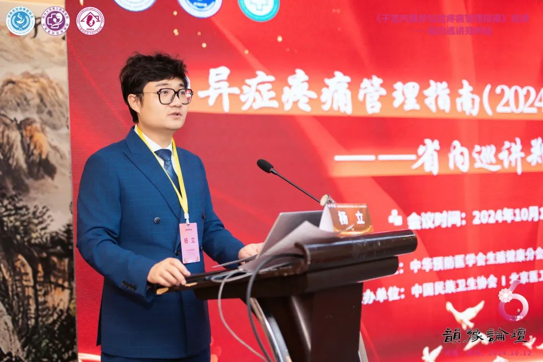 2024年10月13日9点30分,《子宫内膜异位症疼痛管理指南(2024年实践版)》巡讲——省内巡讲郑州站顺利召开。杨立教授在《子宫内膜异位症疼痛管理指南(2024年实践版)》巡讲的开幕式上发表了热情洋溢的讲话。他指出,子宫内膜异位症以难治性、高复发率成为妇科同道共同关注的疾病之一,子宫内膜异位症的规范化治疗更是广大妇科领域同道工作的重中之重。此次巡讲特邀省内外多位专家进行授课,分享临床诊疗经验,共同探讨子宫内膜异位症热点、难点问题。共同推动临床诊疗的思考和实践,助力子宫内膜异位症的规范化诊疗和长期管理。中南大学湘雅医院张怡教授围绕《子宫内膜异位症疼痛管理指南(2024年实践版)》进行了深度解读。