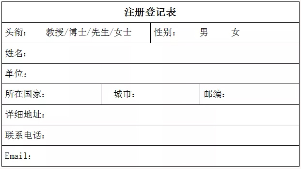 填写注册登记表,邮件发送至: 564831048@qq.com