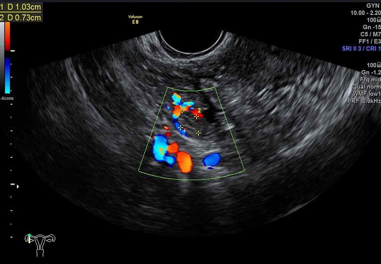 R: PSV:28.8cm/s ,舒张早期血流缺失