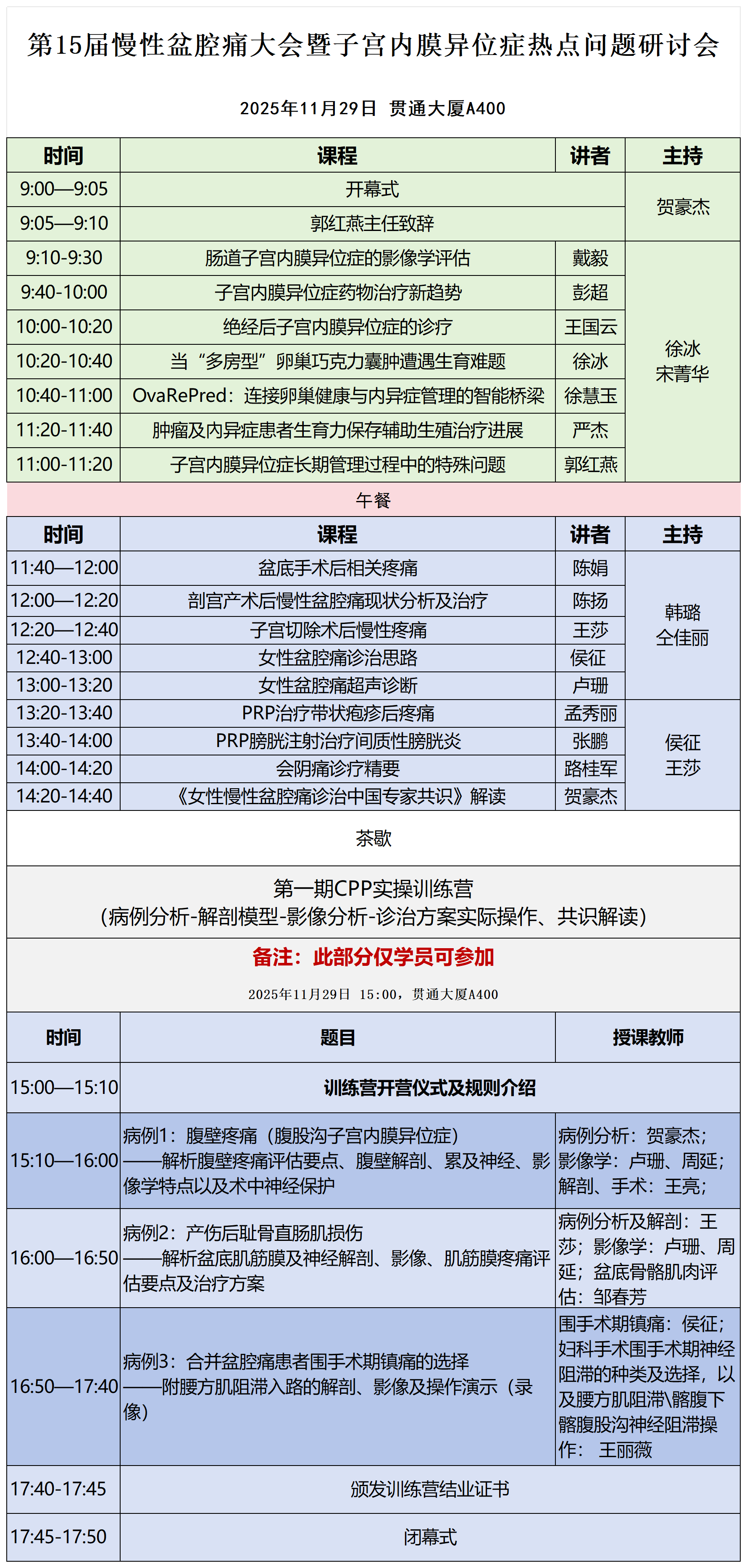 本次会议邀请了国内外相关领域专家就子宫内膜异位症的热点问题进行研讨。另外,本届会议慢性盆腔痛的讨论重点在术后疼痛,包括剖宫产术后、子宫切除术后及盆底重建术后的相关慢性盆腔痛的高危因素、现状及诊治,以及新疗法在盆腔痛领域的应用、慢性盆腔痛国内专家共识的解读。本次会议首次举行慢性盆腔痛实际操作训练营(此部分仅为线下小班培训且限制人数,仅报名缴费学员参加),从病例分析到解剖、影像以及实际操作进行探讨及培训。期待妇产科及其他交叉学科同道们踊跃参会,积极交流,深入探讨,共同进步!具体会议信息如下: